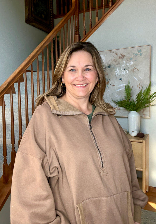 Cocoa Bliss Elastic Hem Oversized Half Zip Fleece Hoodie