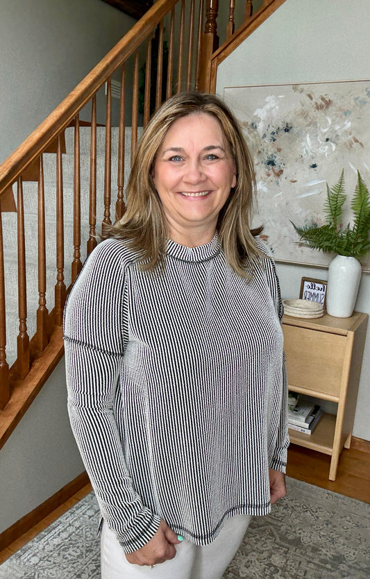 Wander & Rest Cable Ribbed Knit Drop Shoulder Top in Black/White