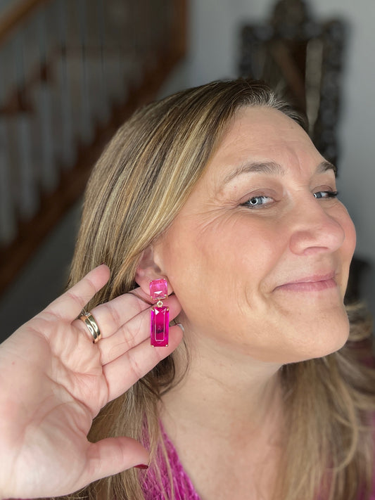 Sparkly Spirit Rectangle Crystal Earrings in Pink