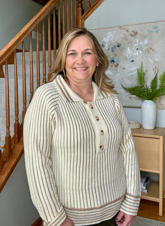 Hallie Half Button Ribbed Two Tone Knit Sweater