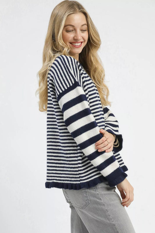 Hallie Half Button Ribbed Two Tone Knit Sweater