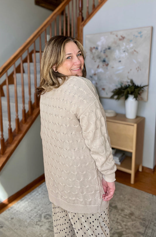 Luxurious Long Sleeve Sweater with Ribbed Trim in Mocha