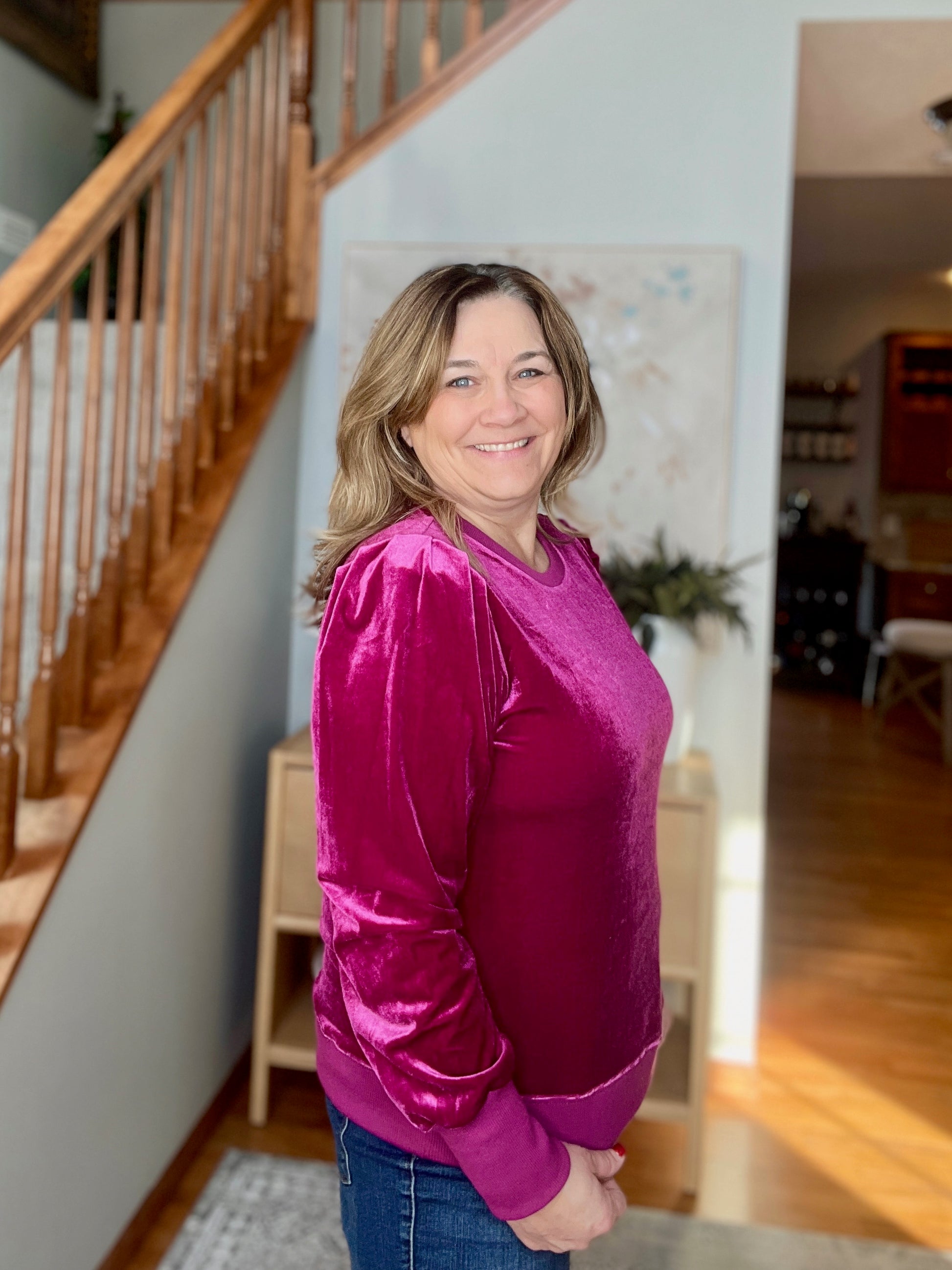 Who doesn't love a little luxury? Our A Special Place Velour Pullover is the perfect mix of plush and chic. The velour knit adds a touch of opulence, while the balloon sleeves and gathered shoulder add playful, feminine flair. The banded contrast cuffs and hemline add the perfect finishing touch.