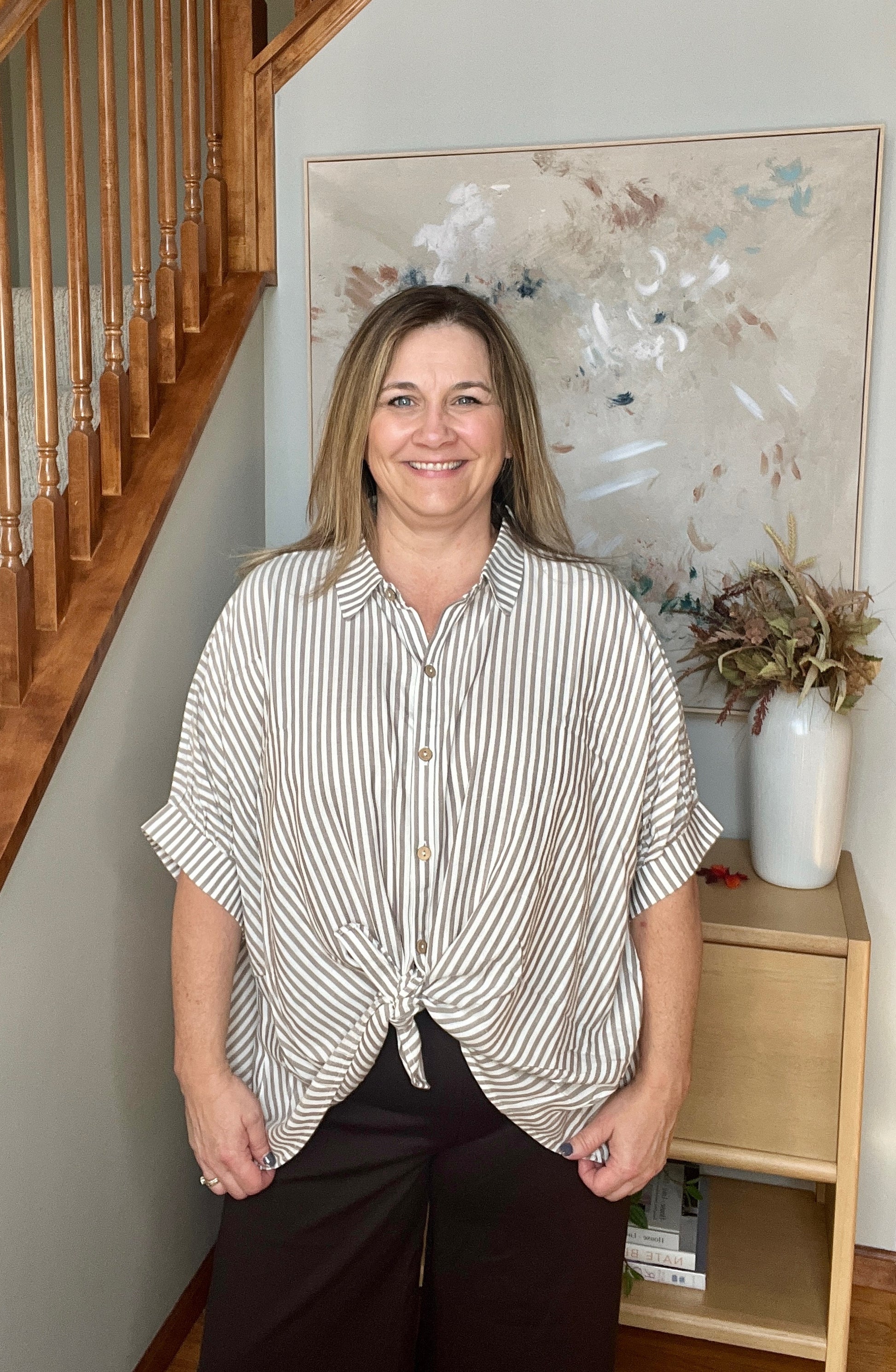 Boxy Striped Button Up in Mocha
