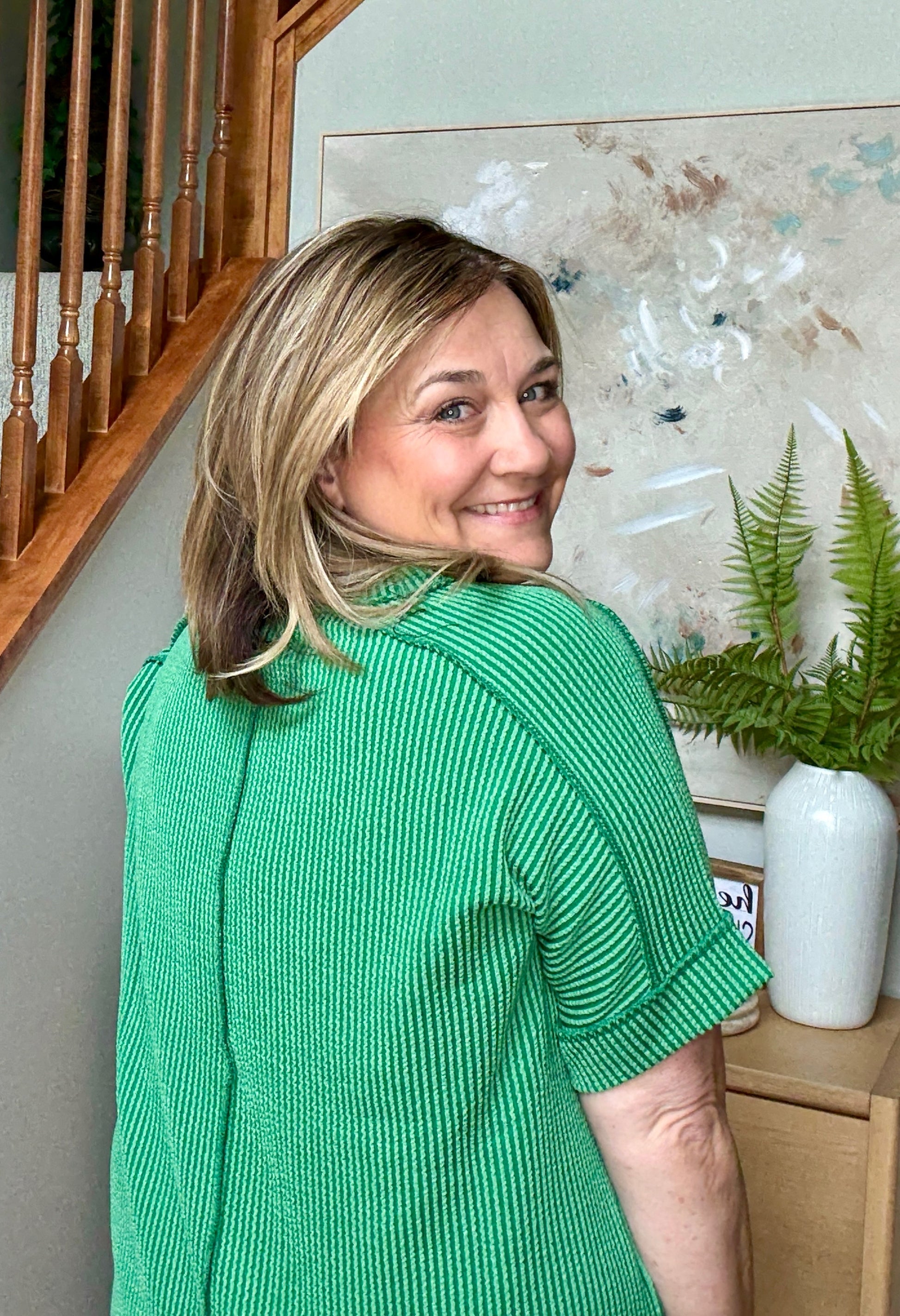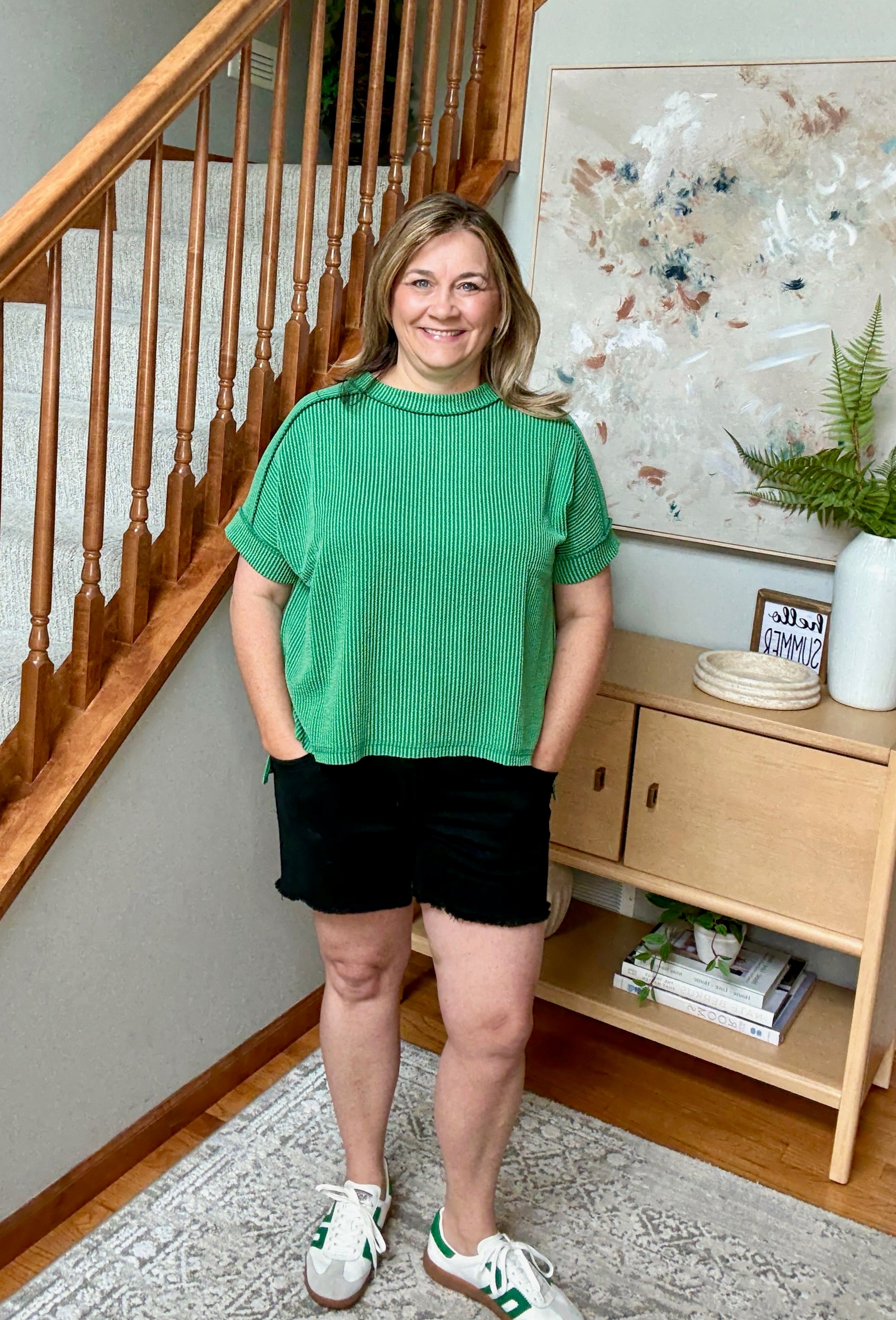 Catch Me Loungin’ Cable Ribbed Knit Top in Dark Green