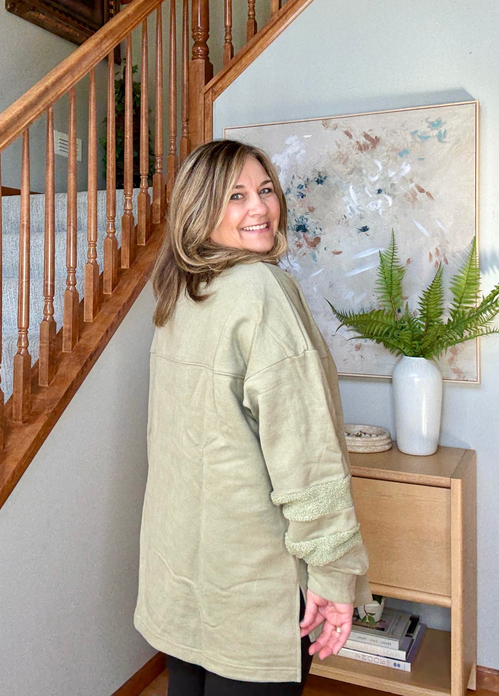 The Falling Leaves Sage Long Sleeve Pullover is your new go-to for cozy days and crisp autumn strolls. With its delightfully soft fabric and relaxed fit that’s comfy without drowning you, it’s perfect for layering or wearing solo. What makes it stand out? The charming textured bands that wrap around the sleeves and collar add a playful twist to a classic pullover look. Whether you’re sipping pumpkin spice lattes or jumping into leaf piles, this pullover keeps you snug and stylish every day. It’s the kind of cozy you’ll want to live in all season long!