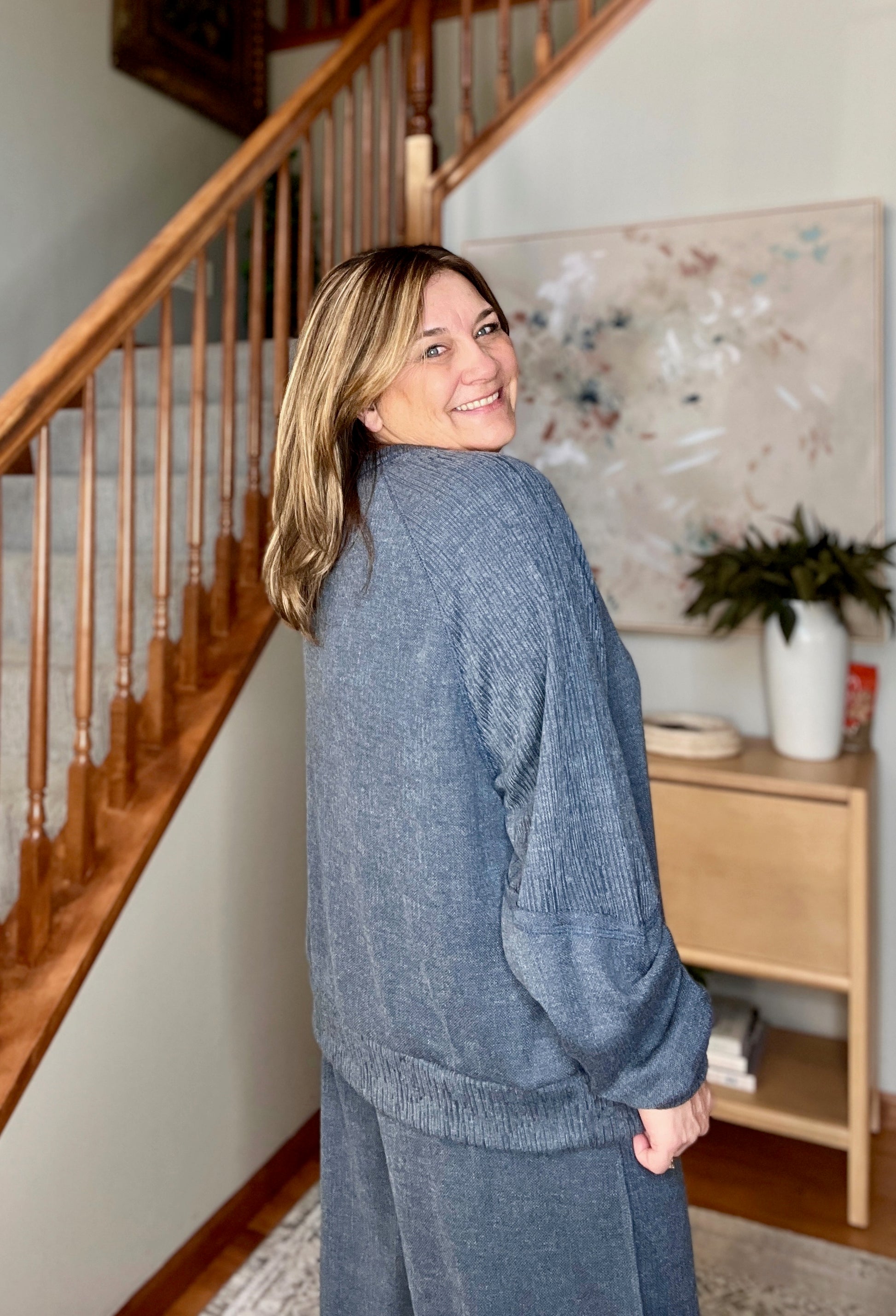 Slip into cozy-chic style with our Effortless Comfort Two-Piece Lounge Set, designed for women who want comfort without sacrificing style. Crafted in a soft, medium-weight knit, this matching top and wide-leg pant set is perfect for lounging at home, running errands, or grabbing coffee with friends. Dress it up with sneakers and a denim jacket for an on-the-go vibe, or keep it ultra-relaxed with slippers and your favorite mug of coffee. Either way, this set is the ultimate blend of cozy and chic.